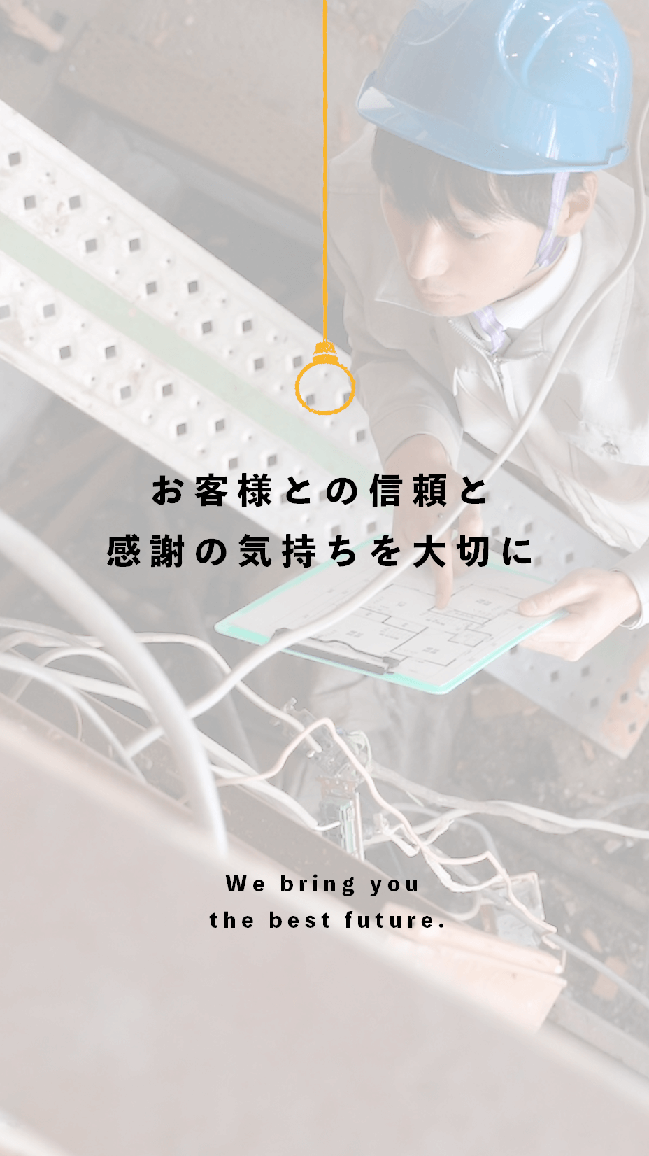 弊社は、さいたま市を拠点に、主に電気工事を営む会社です。弊社では、長期にわたる経験や知識を駆使し、未来の街づくりに取り組んでいます。決して努力を惜しまず、一つ一つの作業に心を込めて取り組んでいます。お客様と共に成長し、より良い社会の実現に向けて邁進していきます。